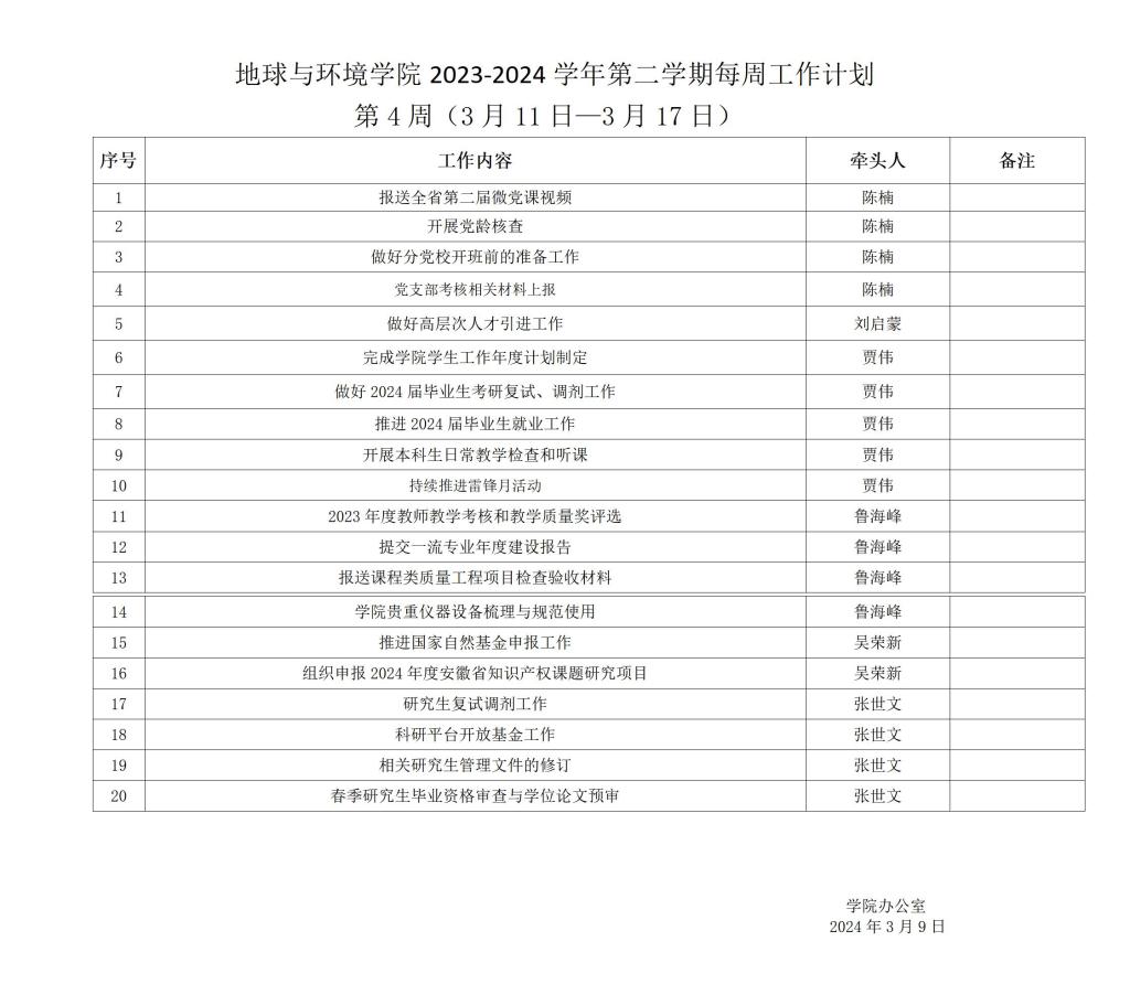 a片网 2023-2024学年第二学期第4周(3月11日—3月17日)工作安排