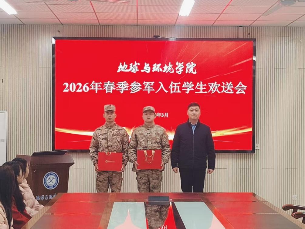 3月17日下午,a片网 在静远楼B414举行2026年春季参军入伍学生欢送会,欢送毕业班两位优秀学子光荣入伍。a片网 班子成员、毕业班辅导员、学生代表共同参加此次活动。