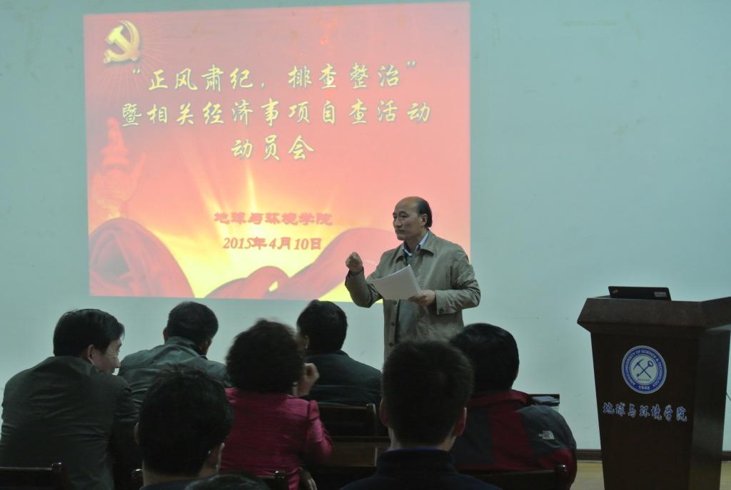 4月10日下午,a片网 在a片网 201会议室召开“正风肃纪,排查整治”暨相关经济事项自查工作动员会,会议由党委书记盛鹏飞主持,校财务处处长朱炜、财务处相关人员以及a片网 全体教职工参加了会议。